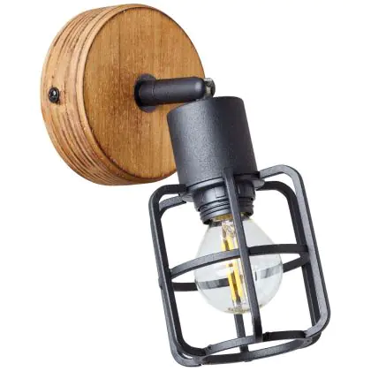 Brilliant Gwen Wall Light Metal Wood Black | Suitable for 1x E14
