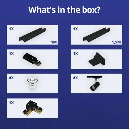 | Manufacturer Name | Complete L shaped 1-Phase Track Set Black incl. 4x Spot fixture + GU10 2700K 3W Dim - 1 x 1,5 meter | |