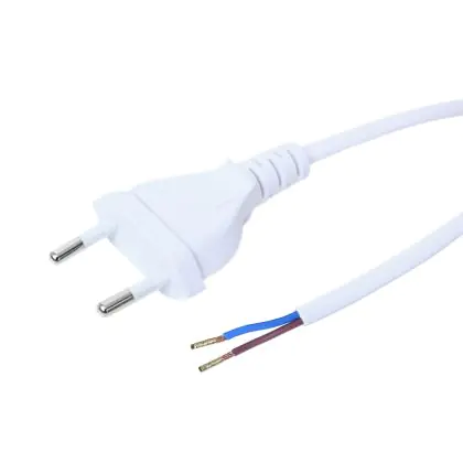 Description Euro Power Cable with Flat Plug 2x 0,75 2m White