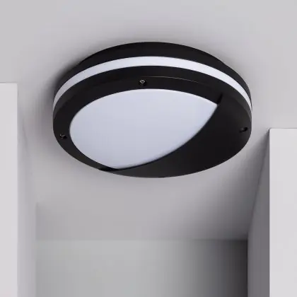 LED Bulkhead Natoli Round Eyelid Black E27 | 300mm - IP54 - Suitable for 2x 40W E27