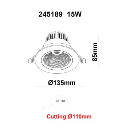 | Manufacturer Name | White label LED Downlight Round Tiltable 15W 1200lm 60D 930 UGR19 CutoutØ110mm FrameØ135mm | |