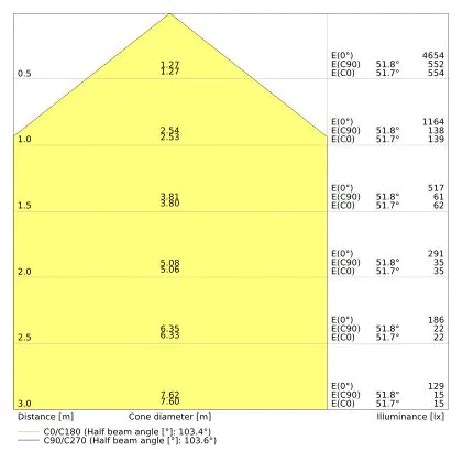 Beam angle of 100°