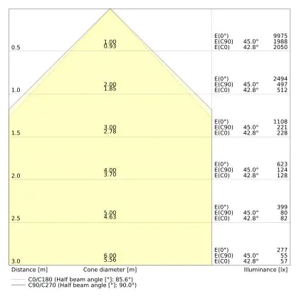 The colour code is a combination of colour rendering (CRI) and light colour (Kelvin). The first number indicates the colour rendering (1 = very poor colour rendering, 9 = maximum colour fastness). The second and third number contains the light colour. Example: the colour code 830 consists of good colour rendering (8) and warm white light (3000K). |