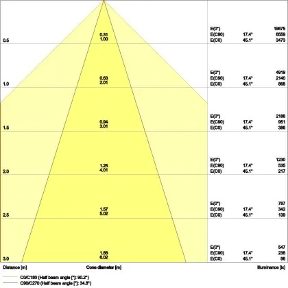 The colour code is a combination of colour rendering (CRI) and light colour (Kelvin). The first number indicates the colour rendering (1 = very poor colour rendering, 9 = maximum colour fastness). The second and third number contains the light colour. Example: the colour code 830 consists of good colour rendering (8) and warm white light (3000K). |