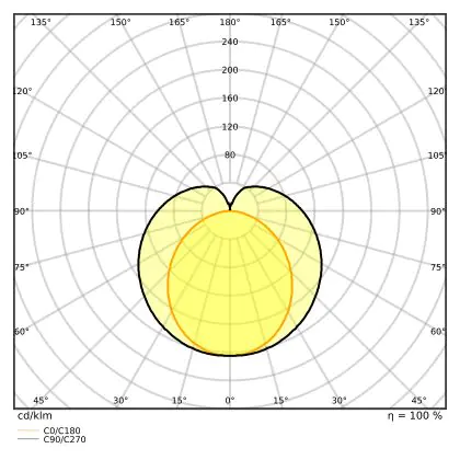 The Luminous Efficacy (lm/W) indicates how efficiently a light source uses energy. We divide the number of lumens by the wattage. The higher the number, the more efficient a product is in terms of energy consumption. LED lighting has a considerably higher lumen/Watt ratio than conventional lighting.