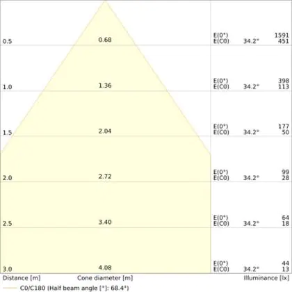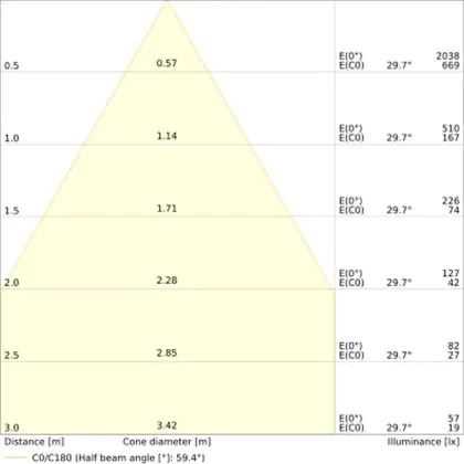 The colour code is a combination of colour rendering (CRI) and light colour (Kelvin). The first number indicates the colour rendering (1 = very poor colour rendering, 9 = maximum colour fastness). The second and third number contains the light colour. Example: the colour code 830 consists of good colour rendering (8) and warm white light (3000K). |
