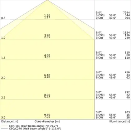 The Luminous Efficacy (lm/W) indicates how efficiently a light source uses energy. We divide the number of lumens by the wattage. The higher the number, the more efficient a product is in terms of energy consumption. LED lighting has a considerably higher lumen/Watt ratio than conventional lighting.
