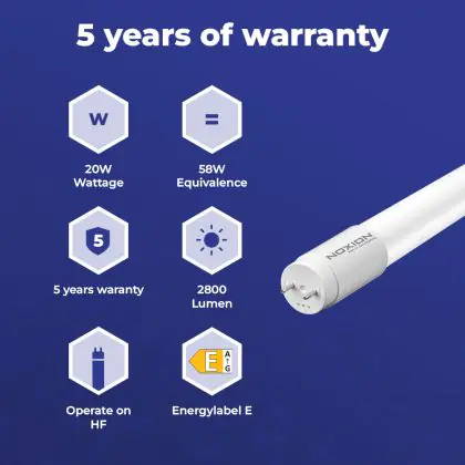 The most common lengths for T8 LED Tubes are 60cm, 90cm, 120cm and 150cm. For T5 LED Tubes this concerns 55cm, 85cm, 115cm and 145cm. Switching to LED? Then always check the length of your current fluorescent lighting. Do you want to know more? Then read our blog! |