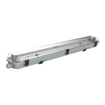The Noxion LED Waterproof Housing Poseidon V2.0 (EM) is a fixture without a ballast. It's easy to install and designed to work with T8 LED tubes (EM). This model is 60 cm long and designed to hold two 18-watt tubes. To see the model that can hold 1 tube, click here.