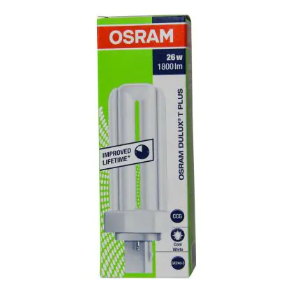 Also, the Osram DULUX T 26W/840 PLUS GX24d-3 Lumilux Cool Whitelifespan is very long, up to 8000 hours. These lamps are also very energy efficient, they have an energy label classified A.