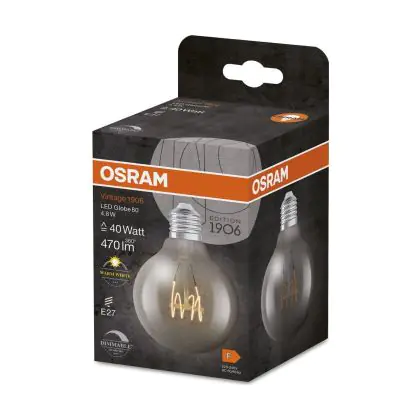 Osram Vintage 1906 LED E27 Globe Filament Clear Slim 4.8W 470lm - 827 Extra Warm White | Dimmable - Replaces 40W