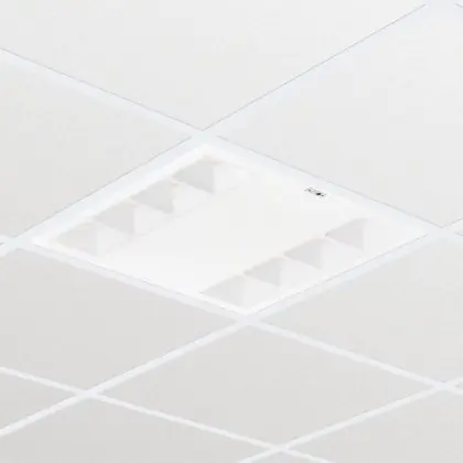 The Unified Glare Rating (UGR) indicates the extent to which the light of a product is blinding. This value differs per application and must comply with European standards (EN 12464-1). A low UGR value stands for a low glare factor. For offices and schools lighting with a UGR<19 value is mandatory and for public areas UGR<22.