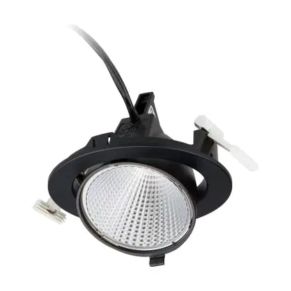 A fixture with a tiltable design makes it possible to direct the lighting specifically at an object or surface. This can play a particularly important role in shops (putting a new collection in the spotlight) or galleries (accentuating works of art). It can also influence the purchasing behaviour or interpretation of visitors.