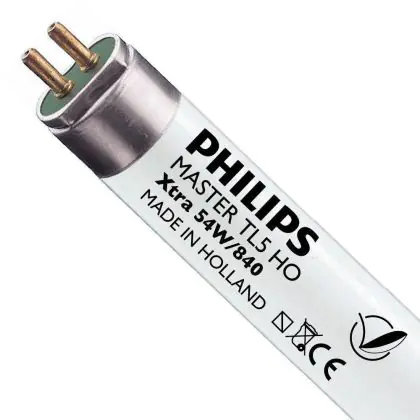 Philips TL5 High Output are fluorescent tubes of 16 mm in diameter that offer the most vivid fluorescent lighting in the world! The emitted light is twice as powerful as that of a TL5 HE tube of the same size. The luminous flux is excellent throughout the lifetime of the tube. Philips TL5 HO Xtra 54W 840 - 115cm have a G5 base type and measure 115 cm.